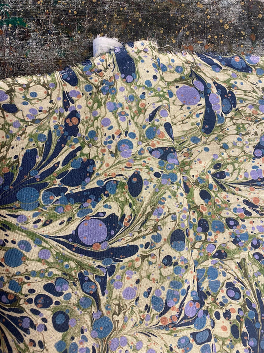Marbled Fabric - 'Serpentine' Col: Spring - Linen / Cotton Union