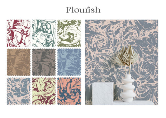 Custom Marbled Fabric - 'Flourish' - Linens & Velvet