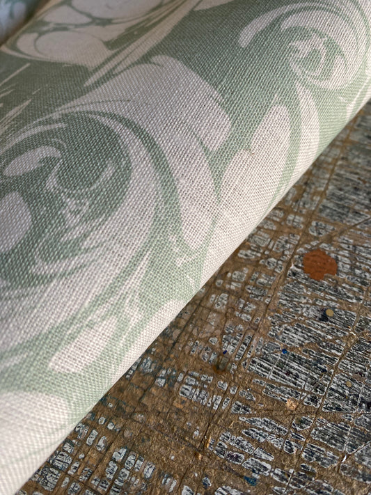 Marbled Fabric - 'Flourish' Col: Willow - 100% Fine Linen