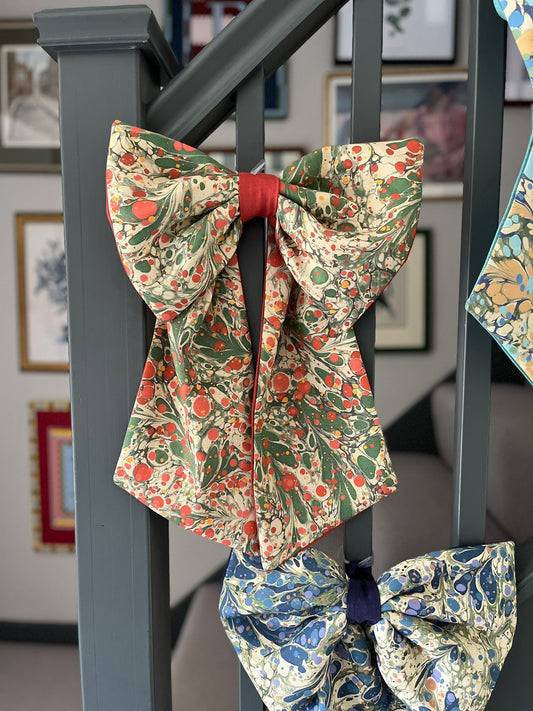 Linen Statement Marbled Bow - Juniper 'Blue Anise'