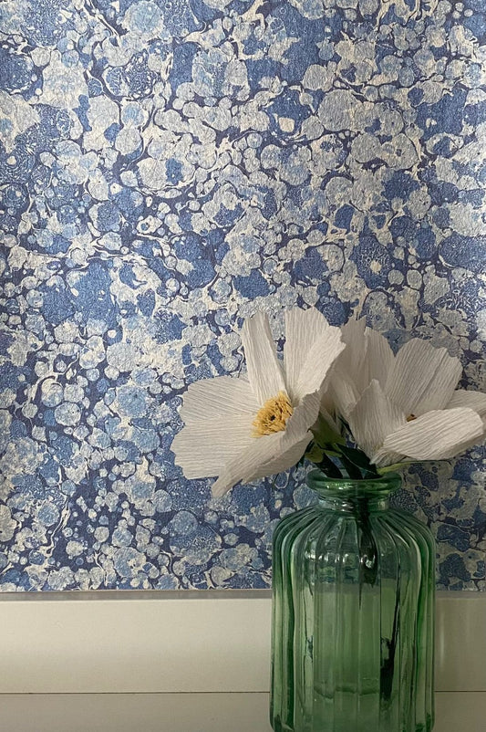 Marbled Wallpaper - 'Ditzy' Col: Blue Daze - Mica Coated Non-Woven
