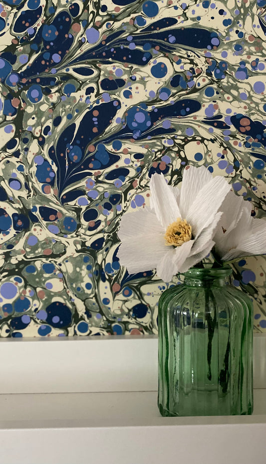 Marbled Wallpaper - 'Flourish' Col: Willow - Eco Non-Woven